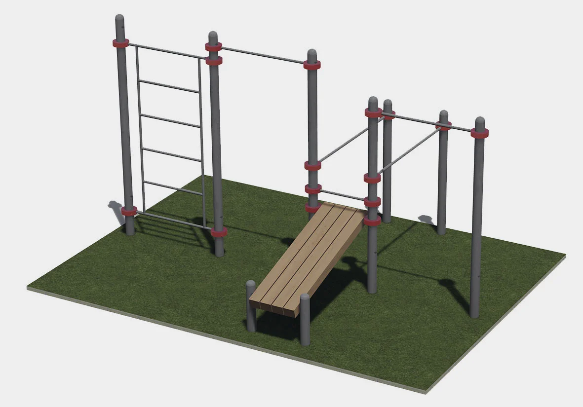 Два турника разноуровневые, брусья, шведская стенка и скамья для пресса