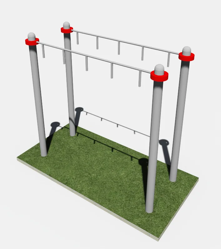 Состоит из 4-х вертикальных параллельно расположенных столбов (высота 2000 мм) и двух перекладин «МОЛОТ» (длина 1790 мм).